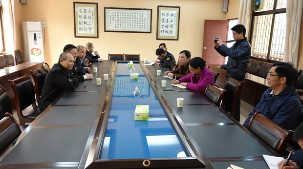 图为始兴县食品药品监督管理局领导和执法人员现场指导始兴中学领导创建韶关市平安学校食堂工作。
