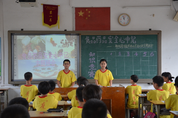 自试点以来,食药安全教育深入每个班级,图为某一正在举行食品药品安全主题班会班级
