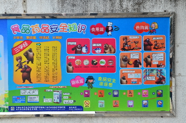 学校宣传栏一侧重点放置了食品药品安全“三字经”及科普知识