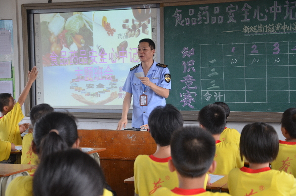 崖门食药所所长到学校和孩子们进行食品药品安全知识互动