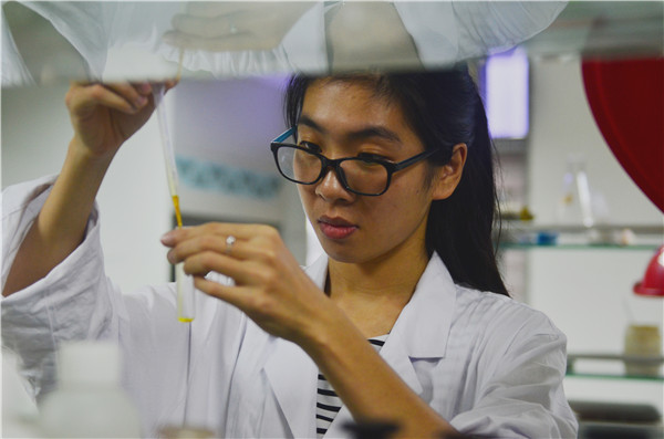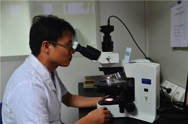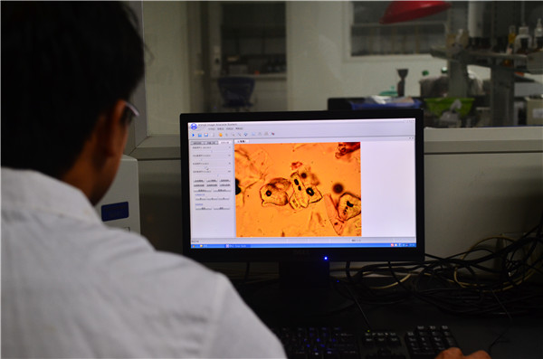 在中药检测室内,一名工作人员正在检测