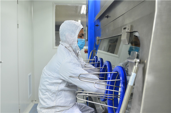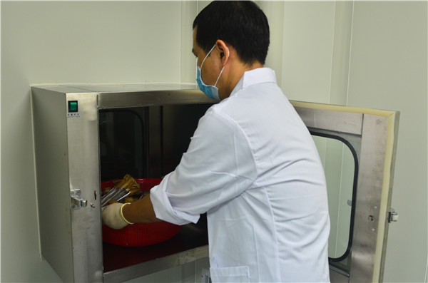 新版药典中对微生物无菌检测条件提出了更高的要求,该所现在的无菌实验室无法满足新版药典的要求,经研究决定购进无菌隔离器一台,图为工作人员正在接收样品,准备做无菌处理
