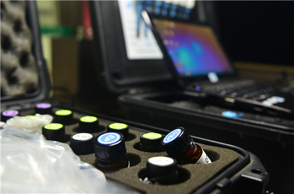 并不是一开设备就可以做检测工作,这里的工作人员告诉记者有些需要调试,图为工作人员在测试一台准备检测的设备