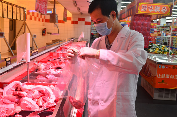 监管人员来到肉档取样