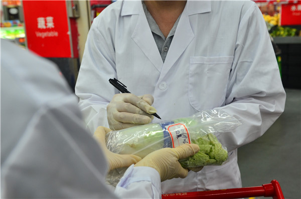 监管人员正在为抽另一个样品作准备,把信息备注食品袋上