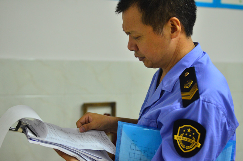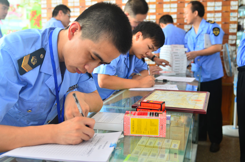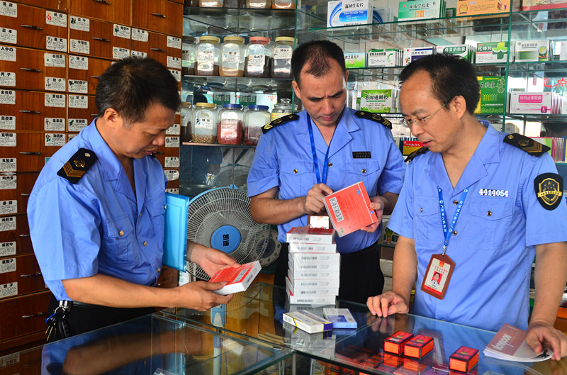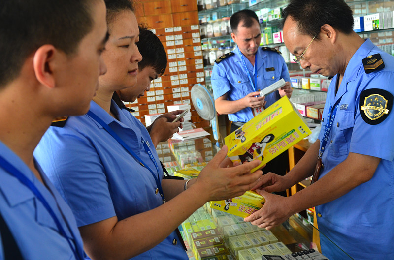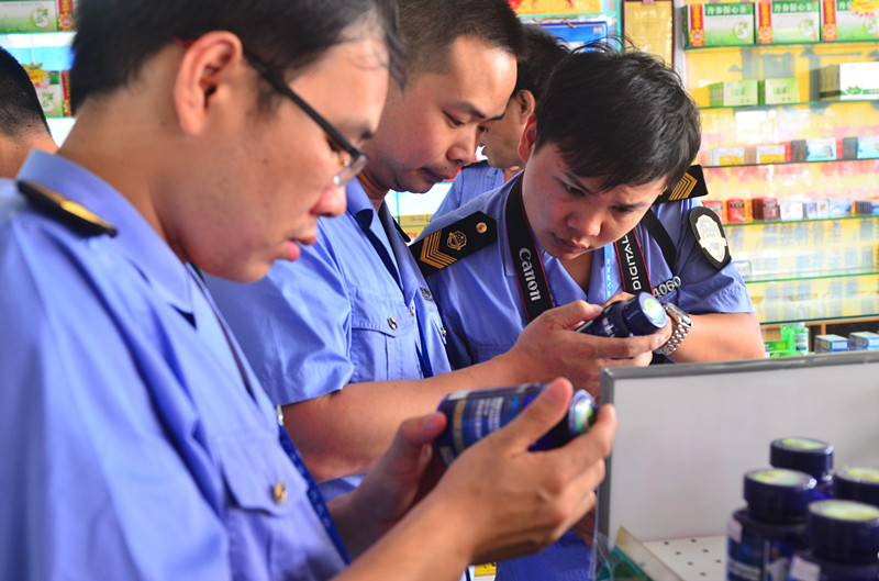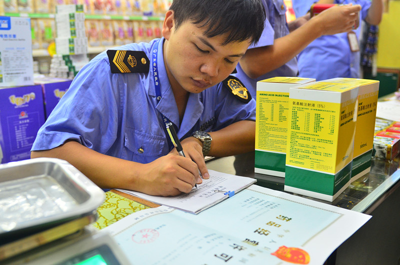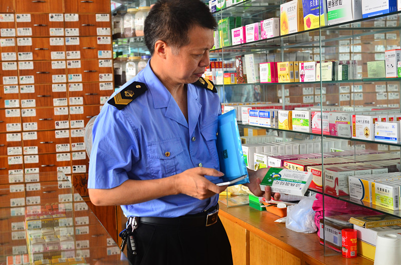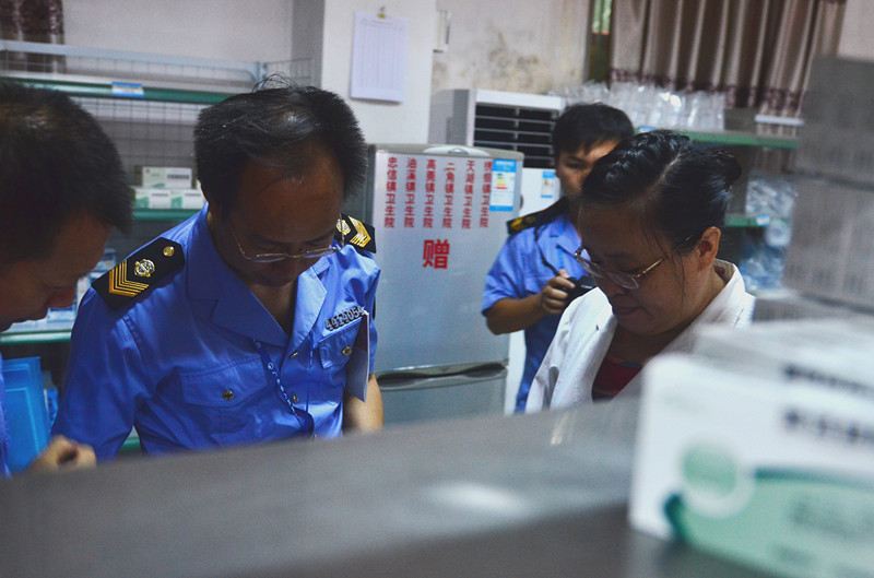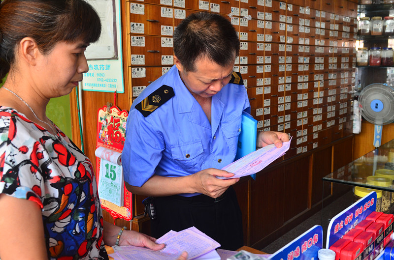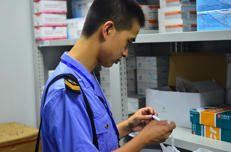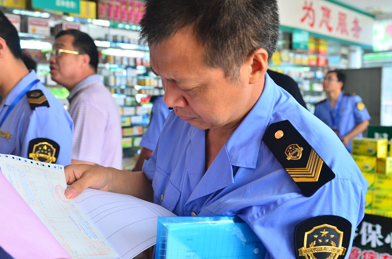 监管人员正在检查进购药品发票