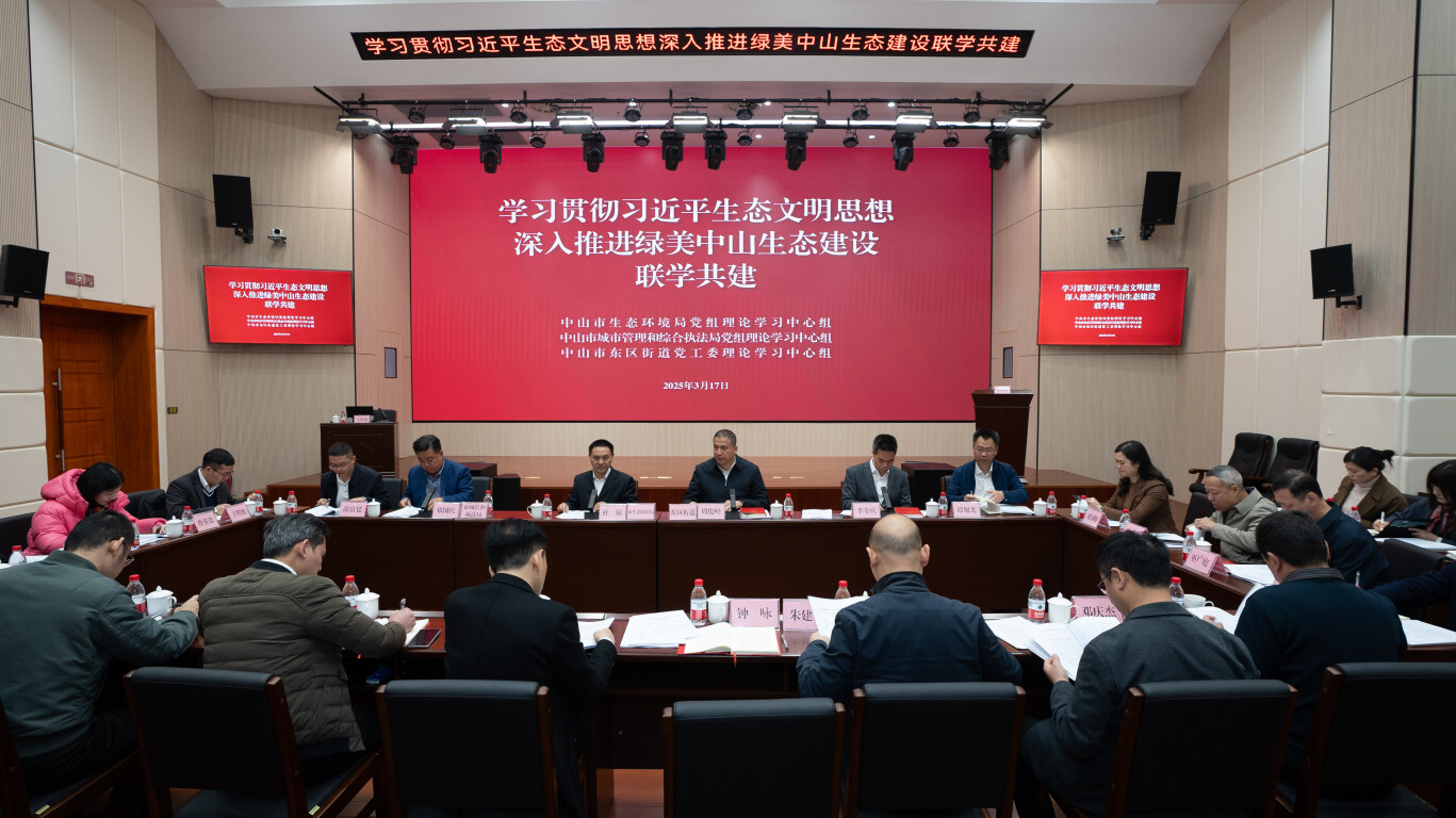 2025年3月17日,中山市生态环境局、市城管和执法局、东区街道党工委(党组)理论学习中心组开展习近平生态文明思想专题联学共建。