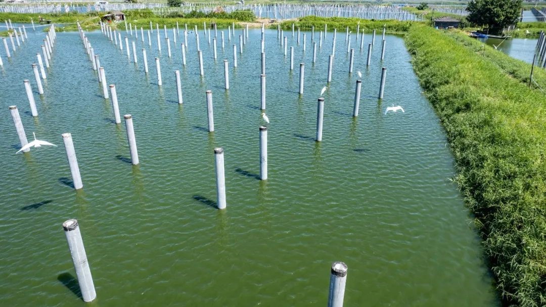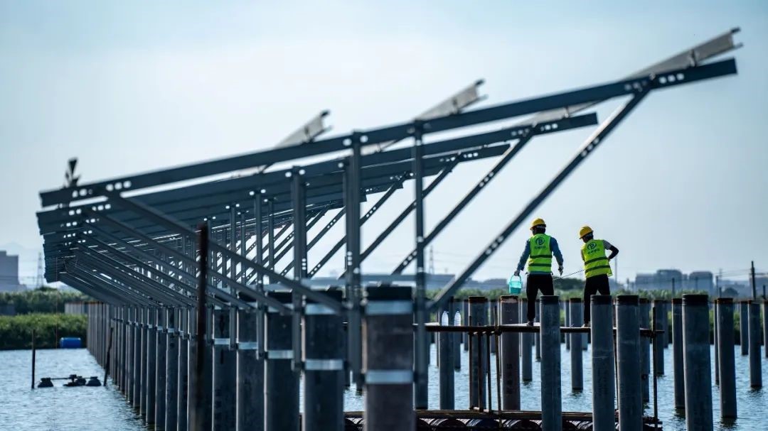 数月后,在汕头渔业养殖区内将见到一片片巨幅的光伏蓝,与鱼塘水面交相辉映,形成一道“渔舟唱绿电”的别样风景。