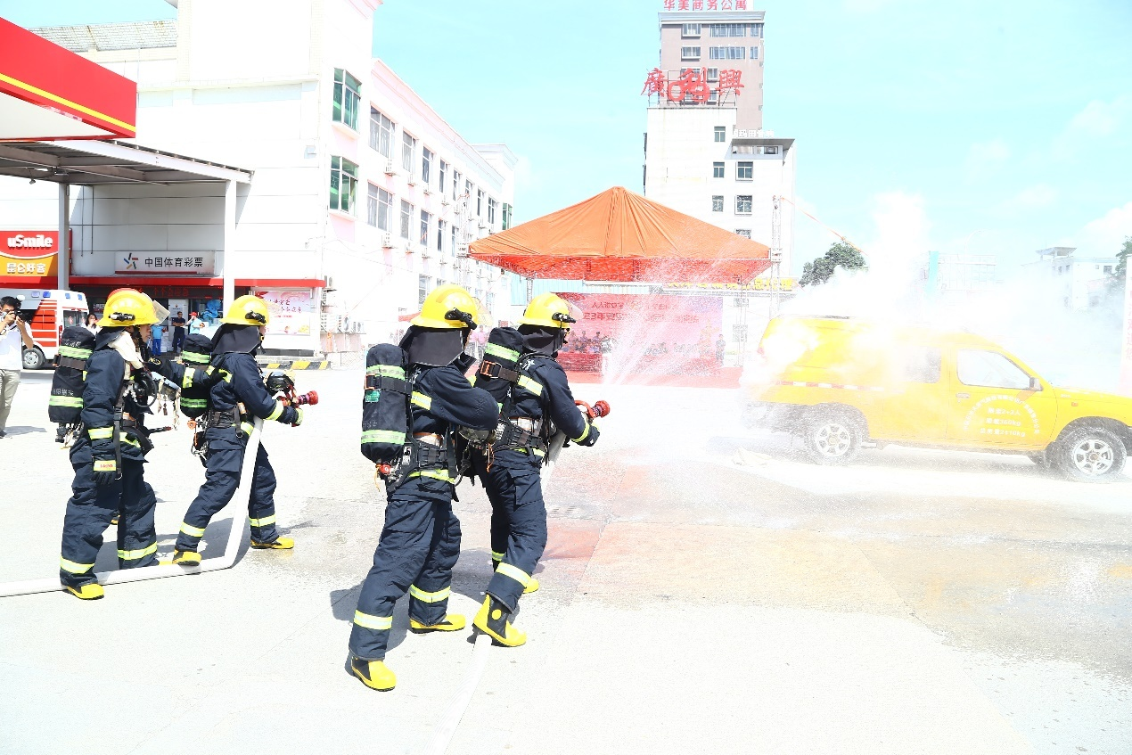 本次演练模拟了以下情景:中国石油揭阳柏兴加油站在3号加油机11号枪92#汽油加注过程中,由于顾客下车时未及时消除化纤质衣服集聚的静电,导致车辆油箱口发生火情,司机烧伤。火情发生后,加油站立即启动II级应急响应,拨打119和120电话,组织人员进行初期火灾扑救,对司机展开应急救援。但将车辆推离加油区域时,车辆后箱的易燃物引发了二次火情,火势进一步加大,加油站随即升级为Ⅰ级应急响应,油站工作人员、公安、消防、医院等力量迅速赶赴现场,开展火灾扑灭、交通管制、人员疏散、堵漏抢修、人员救治、油品回收等应急处置工作。