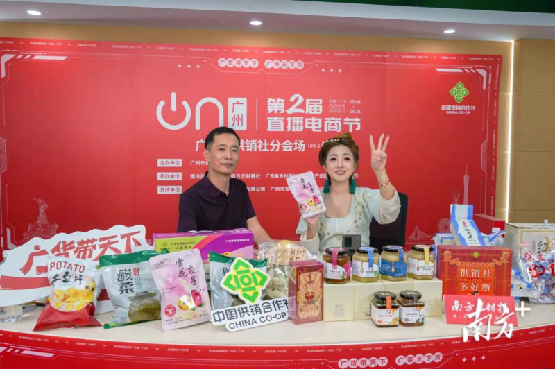 广州市直部门分会场的助农带货活动也进行得如火如荼。9月17日,市供销社分会场凸显“直播+文旅”特色,主播在直播间分批介绍来自11个农产品公司或供销分社、合作社的近40种产品,还与外景主播现场连线,由外景主播实地探访10个农产品生产加工地和合作社,在原产地介绍各地专业合作社的发展情况和合作社主推产品,详细介绍各个产品的产前、产中、产后全流程,形成“多地联播,社社联动”的火热氛围,实现“走播、吃播、玩播”一起上。