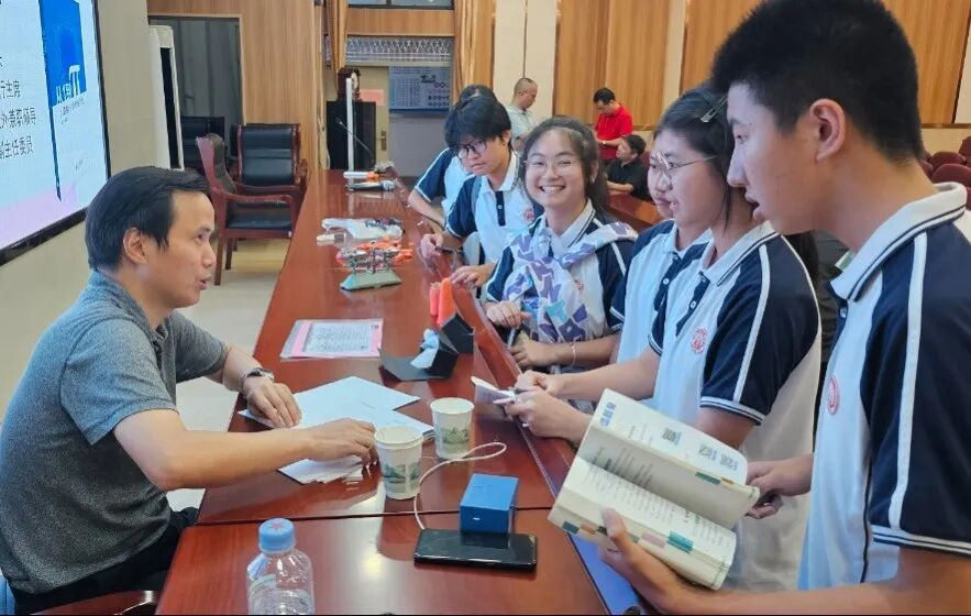回到家乡、母校,蓝云与同窗好友、学弟学妹也深情地回忆起了当年的青葱岁月。对于母校班主任陈大鹏、刘瑛老师,还有各科老师,尤其是数学课丘其昌、郭永冬老师和物理科丘能福老师、化学课丘其俊老师、语文科王开斌老师等的栽培与爱护,还有良好校风孕育下同学们之间互爱互助互信的良好氛围,蓝云至今深怀感激之情。今年初DeepSeek火热以来,蓝云在繁忙的工作之余,面向广东及周边各省市区各级党政机构、大中型企事业单位、大学中学小学等机构,培训了超过20万人次的AI人才,近期还承担了组织落实“首届广东高校数据要素大赛”工作,蓝云解释说:“有时我也感觉累,但为什么我能始终保持激情与耐力?就是母校给我的力量,当年数学老师给我的思维启迪,也就是毕业于南京大学天文系等国内顶尖院系的老师们给我近似开了数学‘天眼’。初中、高中6年,我当了6年数学课代表,我现在只不过是把当年老师们启迪我的数学智慧,以一个恰当的方式回赠给社会。”