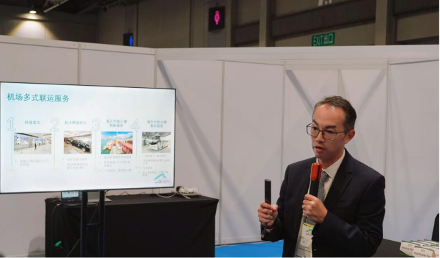 香港机场管理局市场拓展总经理李浩峰介绍香港国际机场情况。摄/冯妍