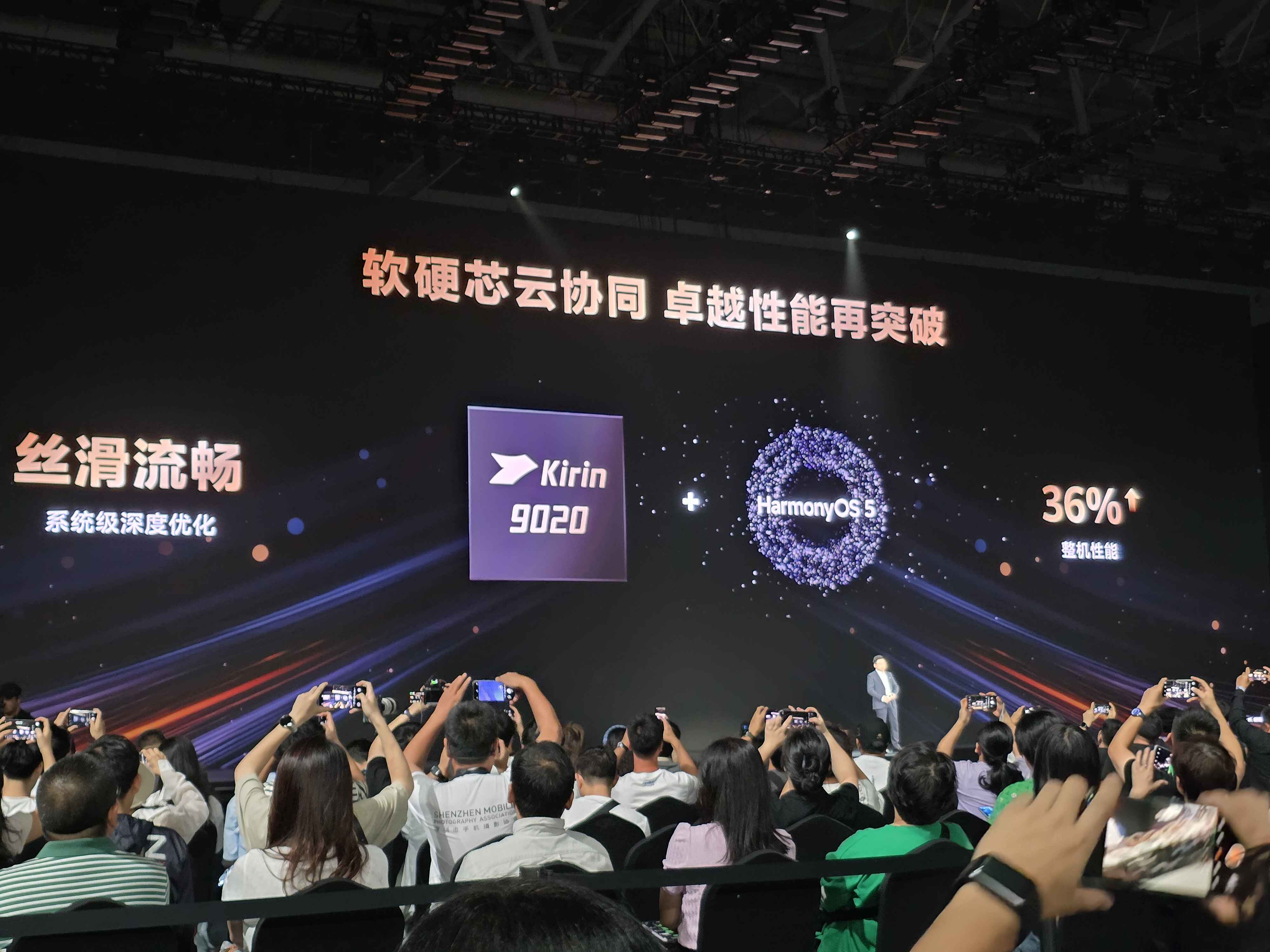 现场,华为首次宣布该手机搭载麒麟9020芯片,可实现软硬芯云协同,系统级深度优化,性能再突破,整机性能提升36%。