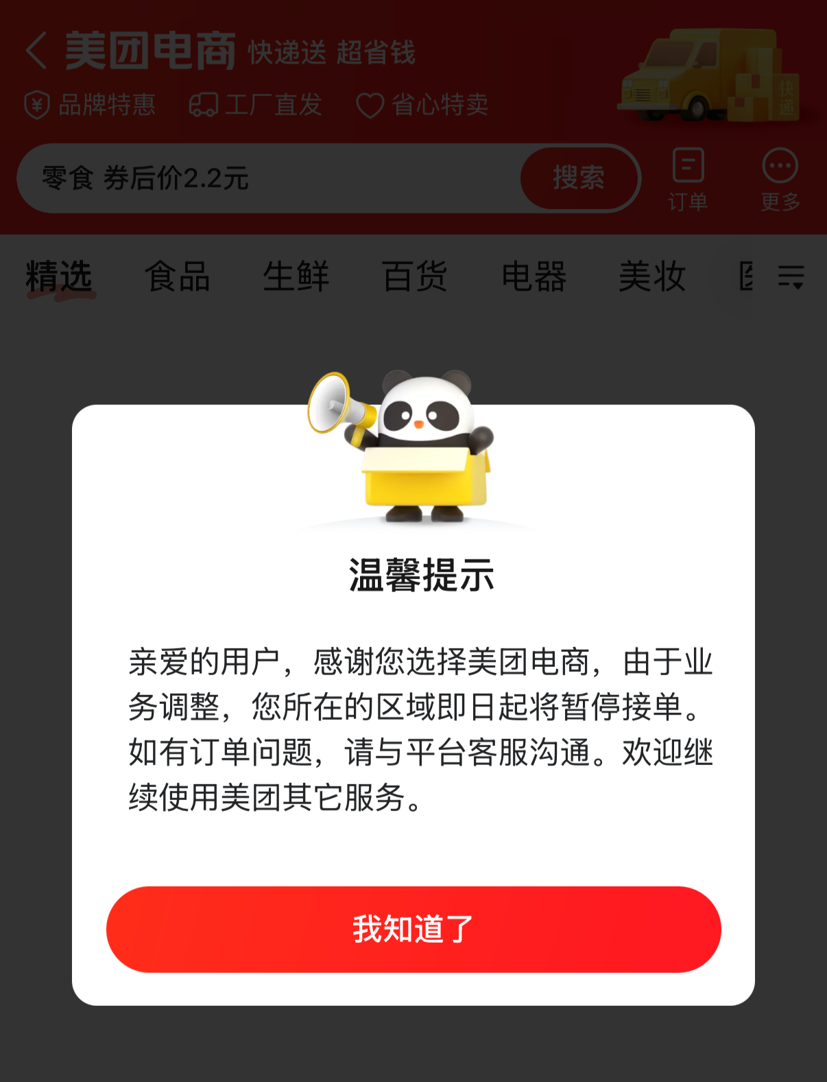 12月15日,美团团好货业务通过内部邮件正式宣布,将暂停“团好货”业务,并表示将聚焦探索零售新业态。目前,“美团APP”侧相关入口被指已下线。