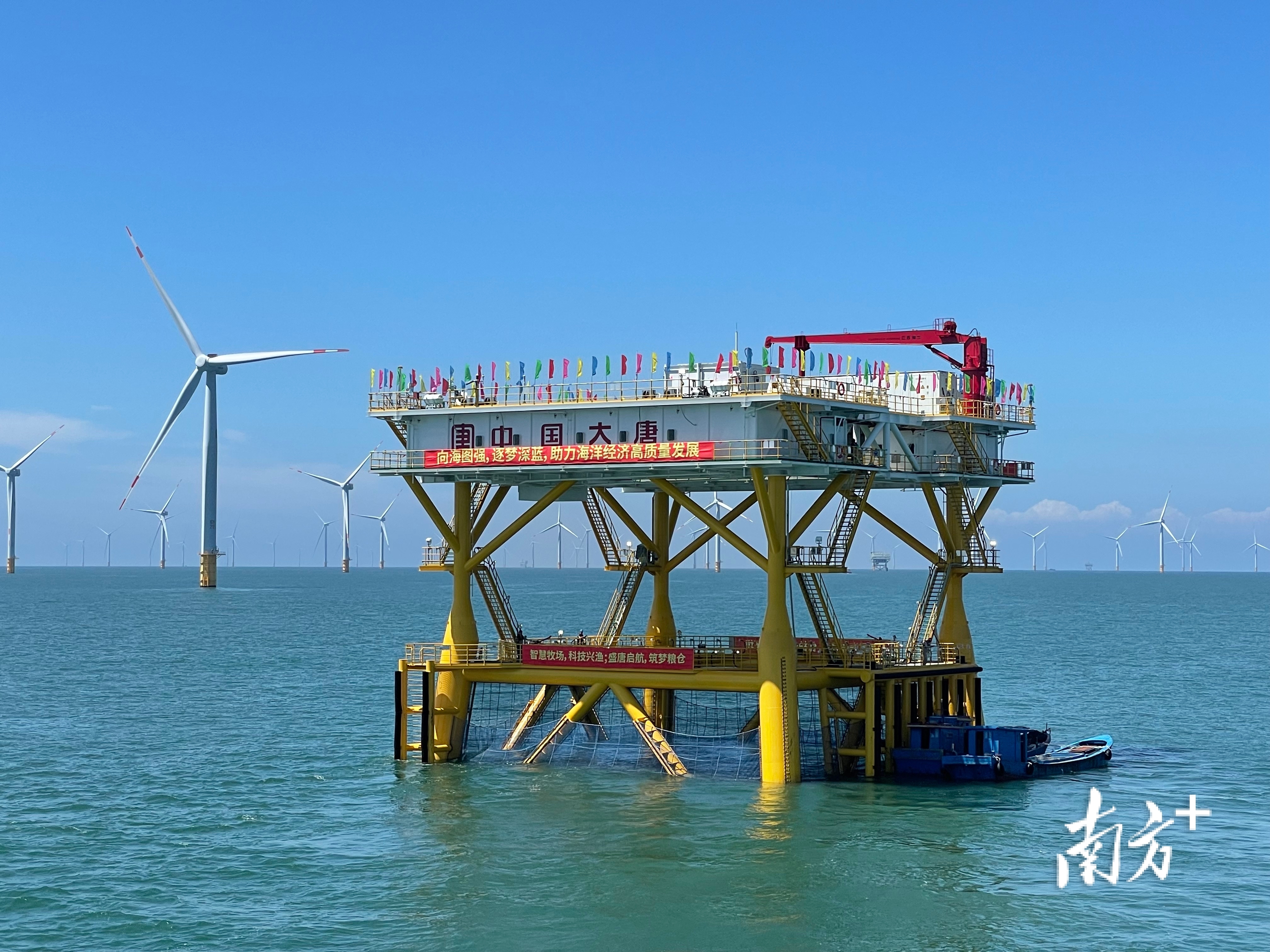 全国首个吸力筒基础桁式“风渔融合”项目“盛唐一号”在汕头南澳勒门海风场投运。