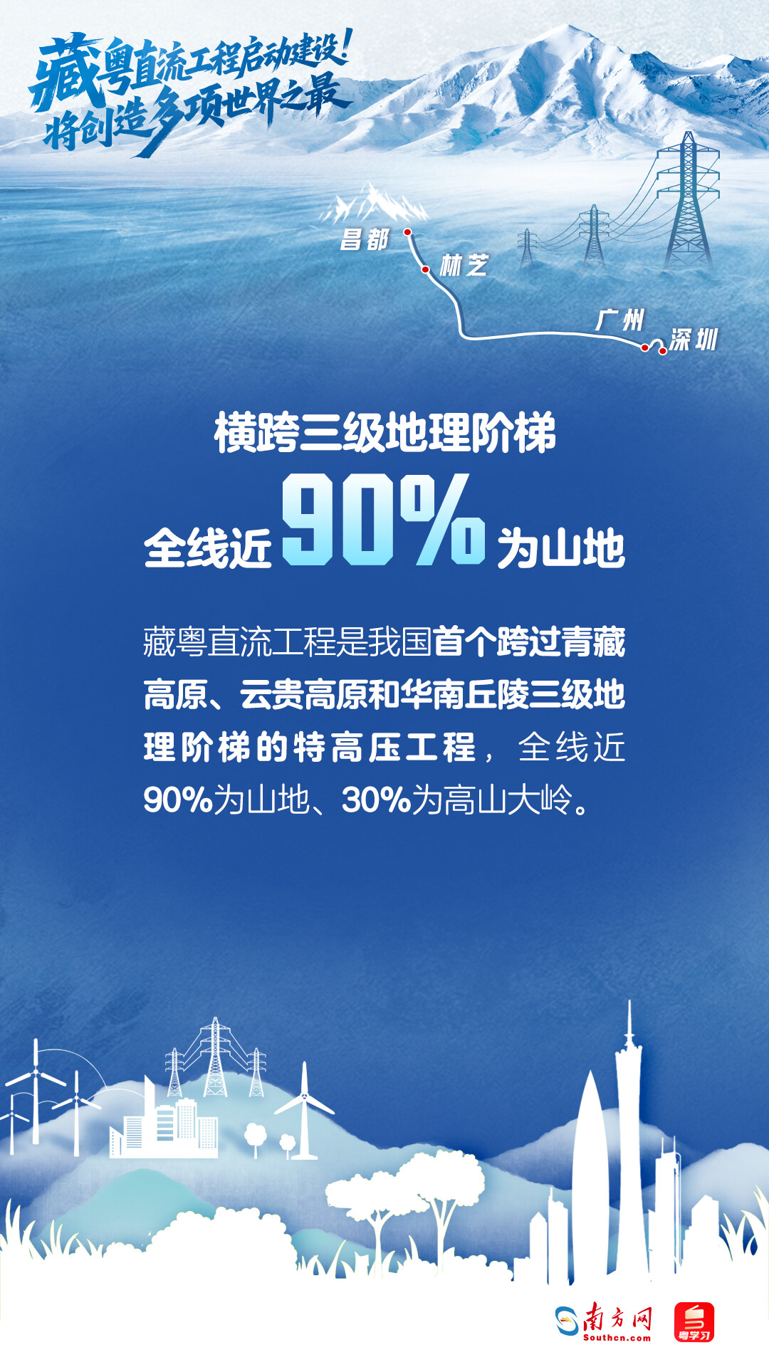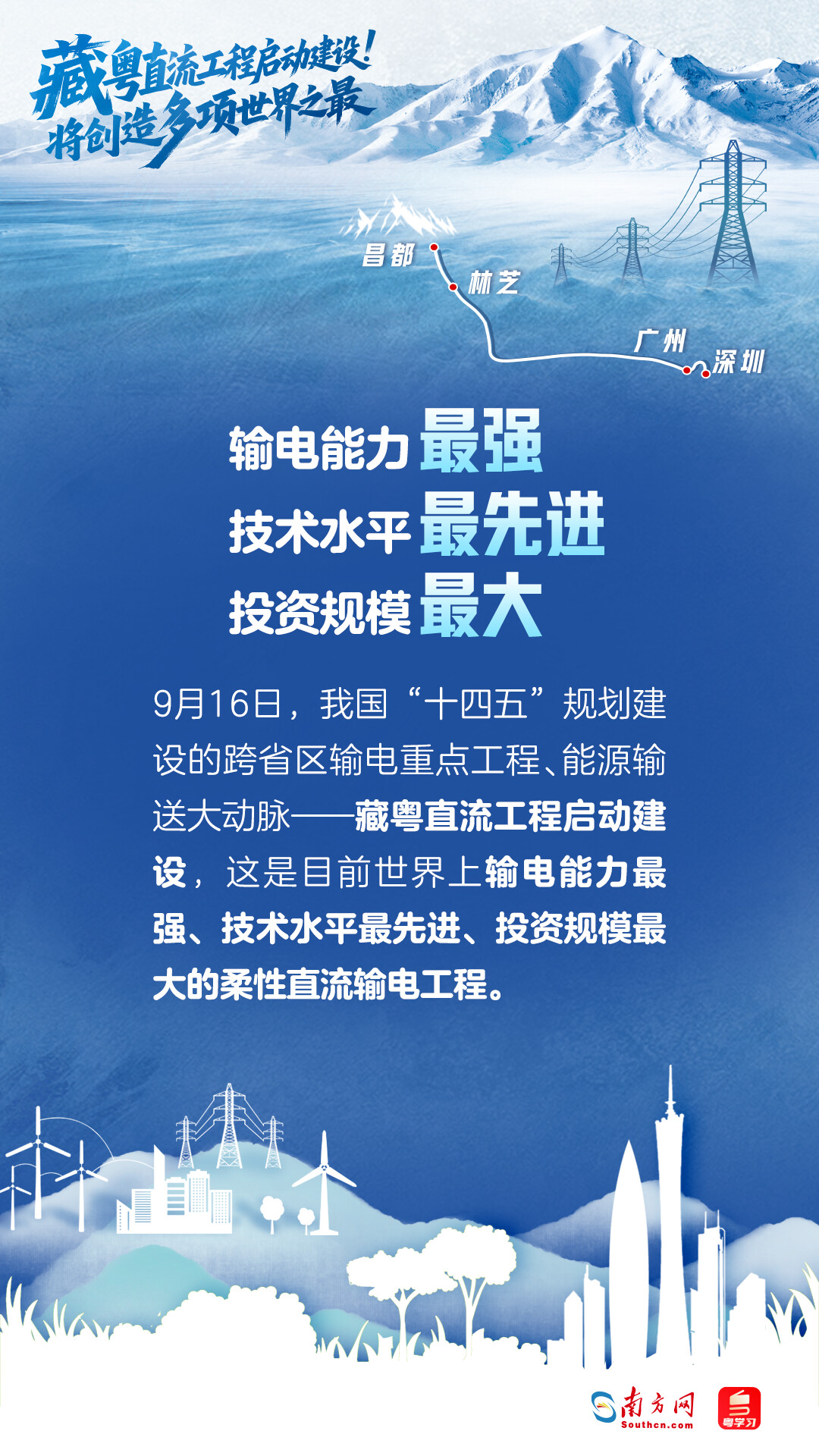 9月16日,藏东南至粤港澳大湾区±800千伏特高压直流输电工程(以下简称“藏粤直流工程”)启动建设。藏粤直流工程起于西藏昌都,终到广东深圳,是首个跨越中国境内青藏高原、云贵高原和华南丘陵三级地理阶梯的特高压输电工程。