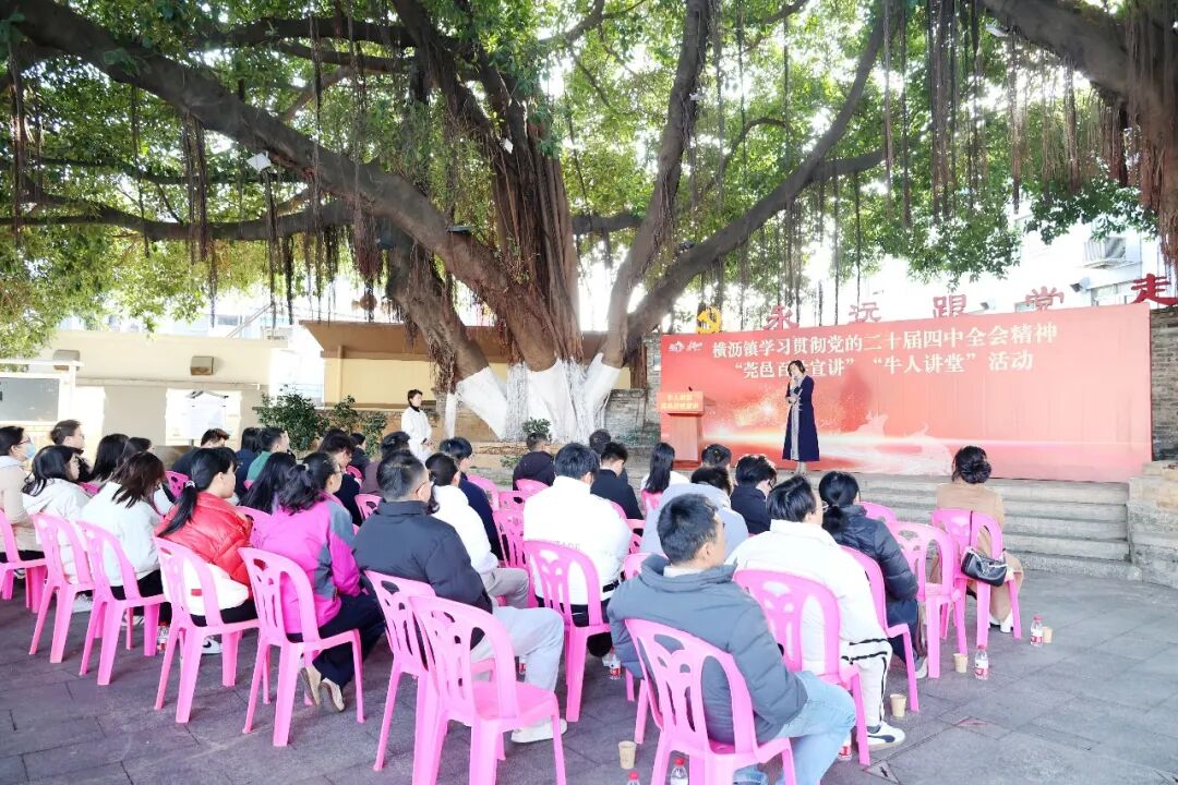 从理论阐释到实践案例,宣讲员们用通俗语言、鲜活故事和真挚情感,让抽象理论转化为生动实践。现场群众表示,榕树下的宣讲接地气、有温度,全是听得懂、记得住的身边事,不仅领会了全会精神,更感受到横沥高质量发展的蓬勃生机。这场“榕树下的理论课堂”,凝聚起力量,让党的创新理论走进群众心里、融入日常行动,为横沥高质量发展注入持久思想动能。