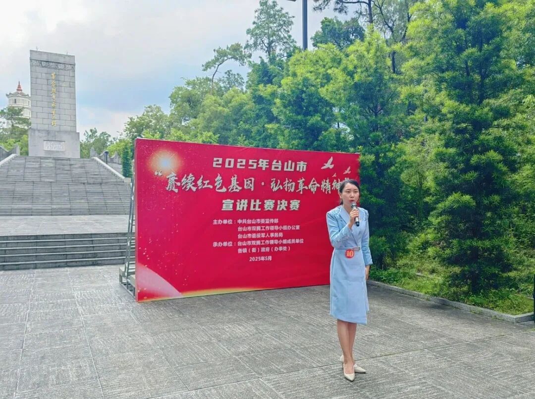 10名参赛选手经过层层选拔,齐聚决赛舞台。他们立于陵园丰碑之下,以赤诚之心为引,以翔实史料为骨,以满腔真情为魂,将台山革命英烈们浴血奋战、英勇不屈的感人事迹娓娓道来。他们唤醒了沉睡的历史记忆,用沉浸式讲述带领观众穿越烽火岁月,见证信仰的磅礴力量。