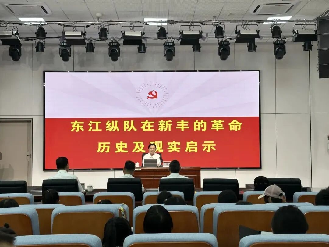 今年5月起,首期“新丰红色文化故事会”在韶关市新丰县图书馆报告厅正式启动,拉开了红色文化故事系列活动序幕。系列活动由韶关市新丰县委宣传部、县人武部政工科、县教育局、县文广旅体局、县史志办、县关工委共同主办,是深化“丰江言”品牌项目建设的重要举措,主要分为在县图书馆举办红色文化专题讲座、走进中小学校的主题教育、面向青少年的红色故事演讲比赛三种形式,生动讲述新丰革命历史与英雄事迹,激发广大群众的爱国热情与奋斗精神。