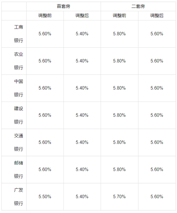 房贷环境正持续宽松。一天之内,多家银行下调广州地区房贷利率。2月21日,记者获悉,工商银行、农业银行、中国银行、建设银行、交通银行五大国有银行,以及广发银行等股份制银行均在同一日下调首套房及二套房房贷利率。同时,邮储银行也于21日晚间宣布,自2月22日起下调房贷利率。
