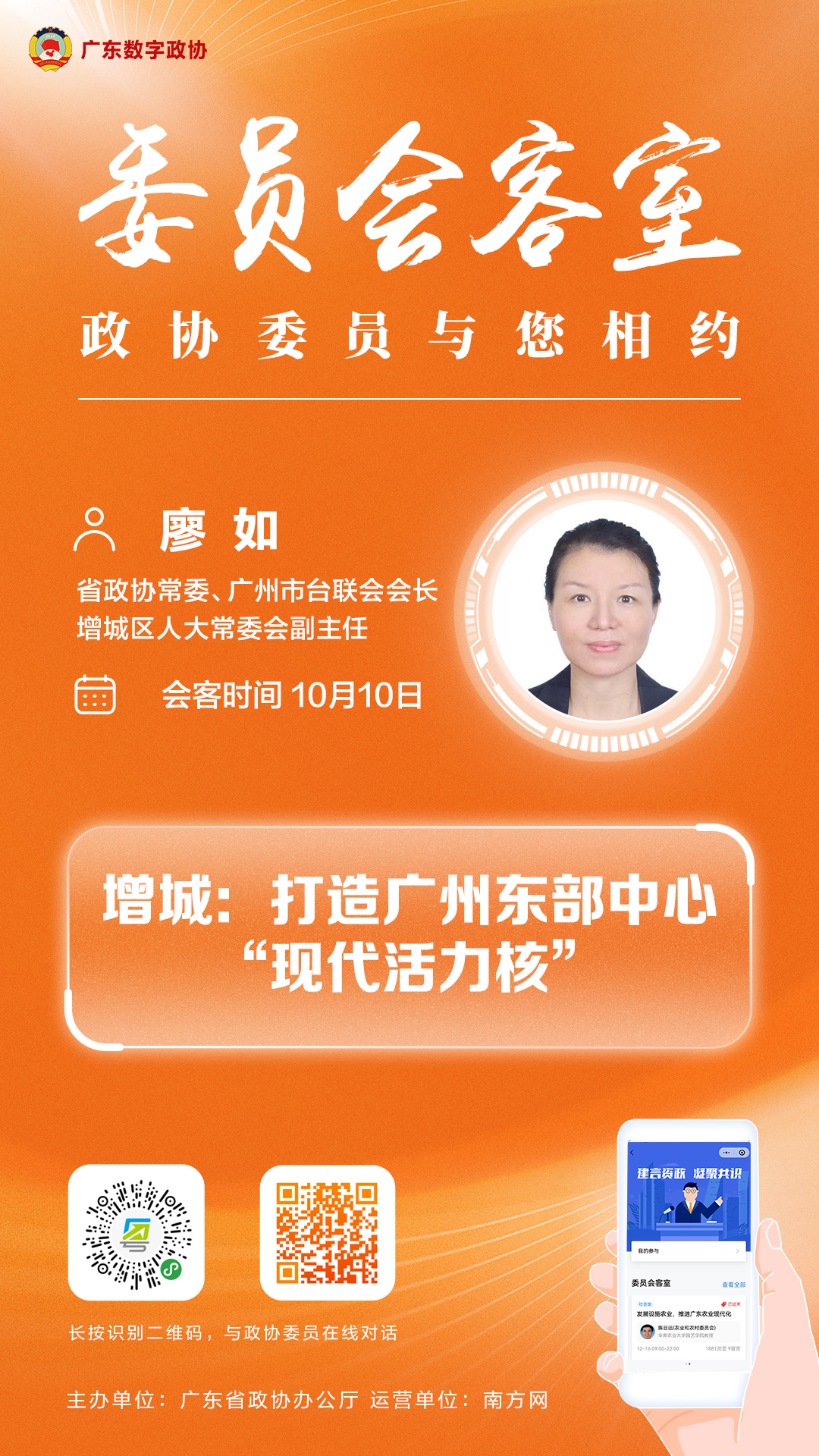 广州增城,作为广州东部中心的重要承载区,不仅具备显著的枢纽优势与扎实的产业基础,更拥有广阔的发展空间和优质的人居潜力。2024年,增城规上工业增加值增速达4.6%,位列广州市工业六区之首;增城国家级经济技术开发区在全国229家国家级经开区中排名第52位,较上一年大幅提升27个位次……这一组组数据,生动勾勒出增城一年来全力推动广州东部中心建设的奋进图景。今天,省政协常委、广州市台联会会长、增城区人大常委会副主任廖如在线与大家共话“增城:打造广州东部中心‘现代活力核’”这一话题。