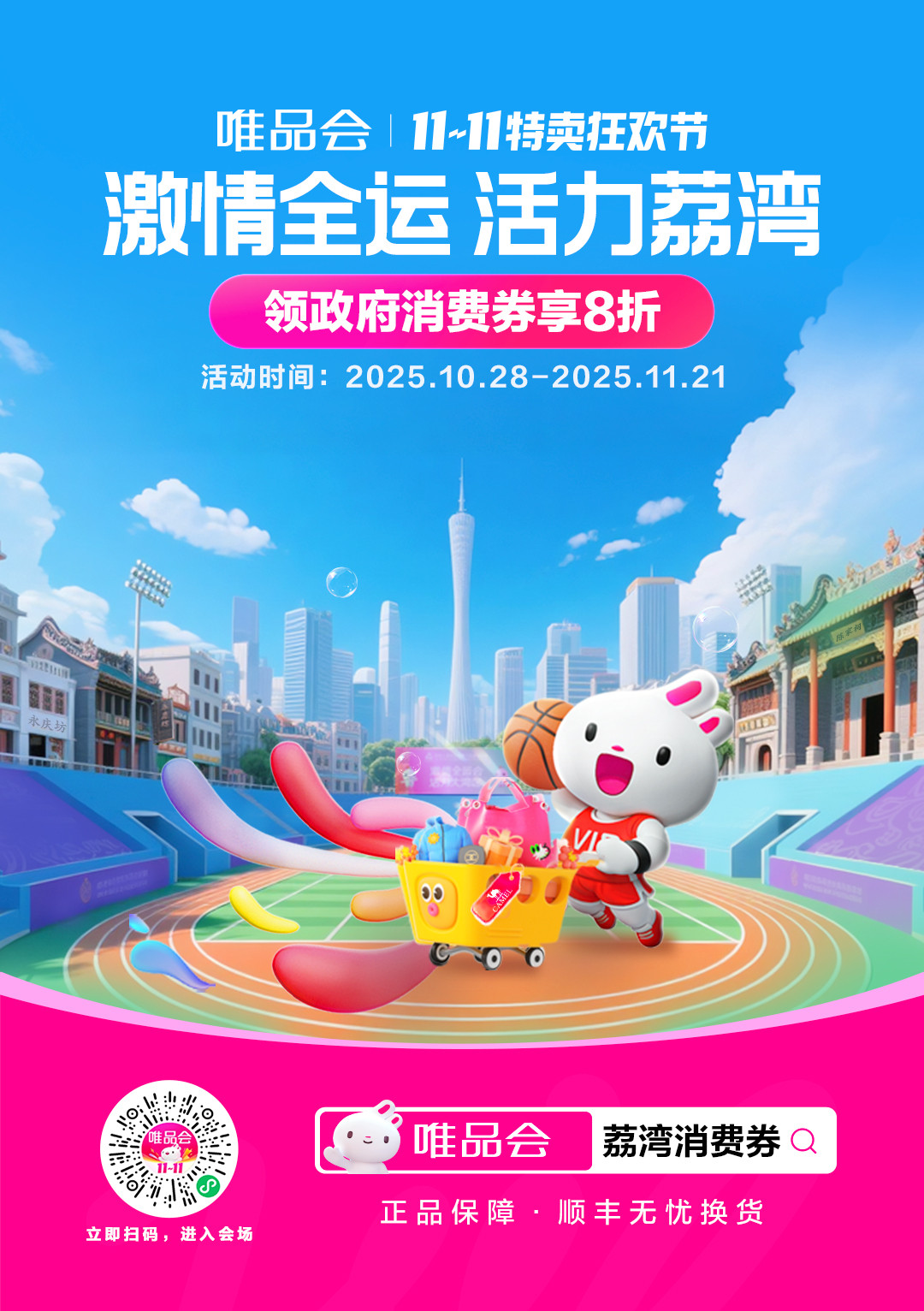 据了解,唯品会已于近日上线“激情全运 活力荔湾”促消费活动。广州消费者在唯品会APP或微信小程序搜索“全运广州”即可直达活动专区领取8折政府消费券,最高每单可省200元。活动期间,正值唯品会11.11特卖狂欢节,大促折扣叠加消费券优惠,让更多消费者轻松拥有心仪之物。